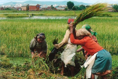 We started our journey early in the morning. The sky was a pale orange with the driver loading the jeep with the bare essentials. Ready to go. Our tour was well and truly going to last a week. From what I had heard, the journey would be pleasant except that, after dark, there would be danger in the Abusitra area from bandits as we crossed the mountains. We set out with the help of God the Bishop of Madagascar, our guide Jean Tettien, our translator Mr. Samuel, Diakos Alexios and the writer. As soon as we left the area where the base of the Diocese is from Alasura, nature began to unfold like a painting with rivers bursting out of the mountains and joining in the small valleys where ducks, geese, birds of various species and colours were having a rendezvous. Beautiful trees with strange fruits and berries that I was seeing for the first time in my life. I was thinking that this is probably what heaven would look like.