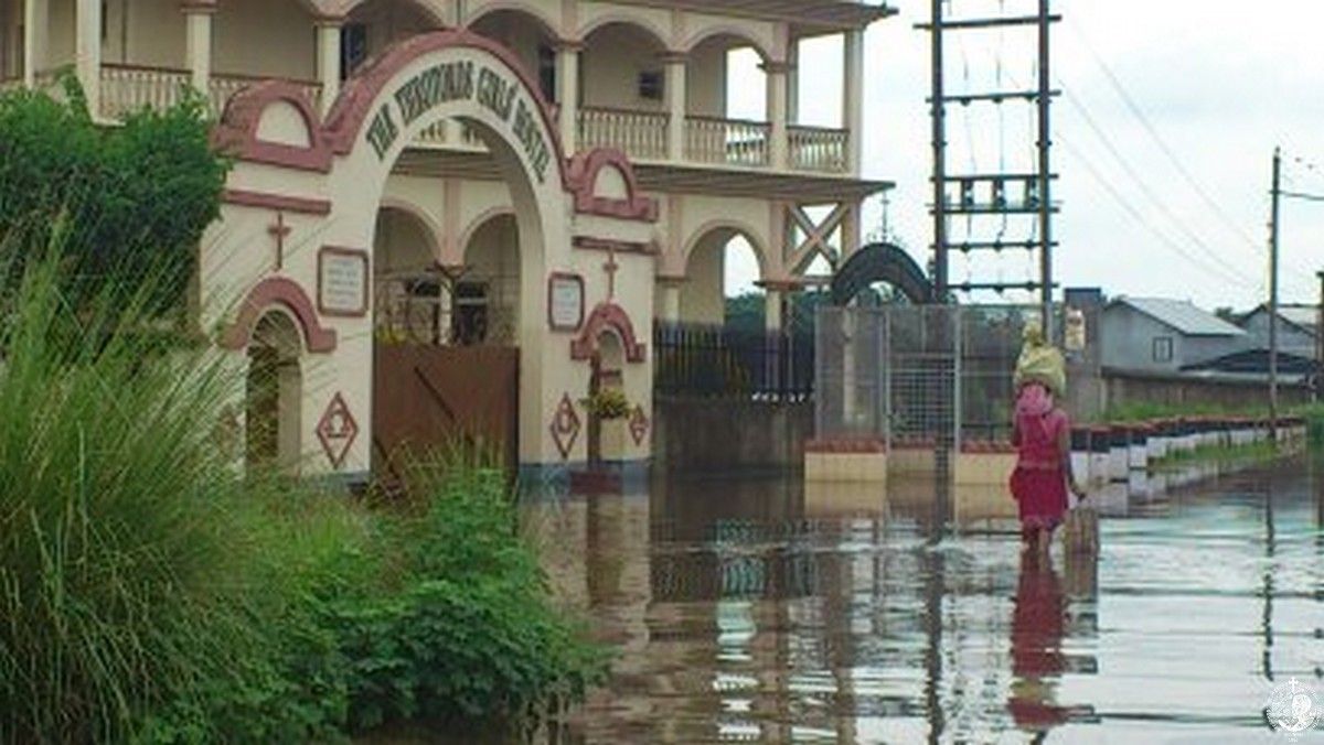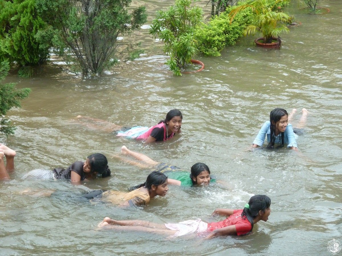 The first two days the children enjoyed it. The water was clear of rain and they were able to swim in the yard and play, but then it got mixed with manure and sewage from overflowing cesspools and turned into a swamp. The only good thing is that it filled our yard with fish. For three months we didn’t buy any. God brought them to our door! But along with the fish, the water also brought in poisonous snakes that were looking for a dry place… And dry place was only our buildings which fortunately are elevated and the water stopped just 2 cm at the last step of the entrance. We built makeshift bridges, on which you have to keep a good balance to get from one building to another.