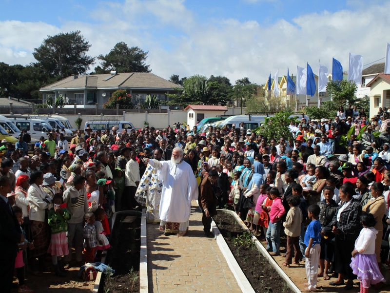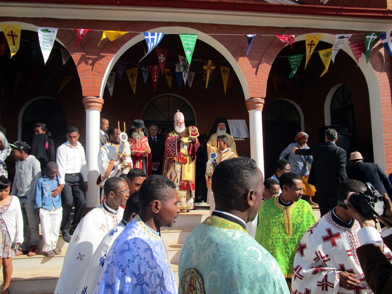 The 10-day missionary tour of His Beatitude Patriarch Theodoros of Alexandria and All Africa to Madagascar, the “eighth continent”, was completed on June 7. The Primate of the Alexandrian Church was enthusiastically received by His Eminence Metropolitan Ignatius of Madagascar, the clergy and the devout people of Malagasy. He was also accompanied on his tour by the nuns of the Holy Monastery of Panagia Theogenetria of Crete, who are currently in Madagascar to help consolidate monasticism. During his visit, the Patriarch inaugurated the new Girls’ Orphanage in Andoharanofotsy, which will house 200 needy and orphaned children. The construction of this institution has been a concern and dream of the Metropolitan of Madagascar for many years, as many infants are abandoned on the streets, as parents are unable to feed them due to poverty. Our Brotherhood with your help has been a co-funder of the project. The Patriarch also took part in the priestly assembly of the Orthodox clergy of Madagascar, met with the students of the seminary in Ampany, and visited the Presidential Palace, where he spoke with the President of Madagascar, Mr. Heri Rajahonarimabianina, about the multifaceted work of the Orthodox mission. Furthermore, His Beatitude inaugurated the Holy Church of the Presentation of the Virgin Mary in Andoharanoftsy, opened the doors of the country’s first Orthodox University in Manakara, as well as a new primary and secondary school in Ampany. Finally, he visited Toliara, where he inaugurated the medical clinic of the parish of the Immaculate Conception, which will treat local children free of charge, and performed the inauguration of the Holy Peace Church. On the last day, he presided over the Divine Liturgy at the Toliara sports stadium, attended by thousands of faithful from the region.